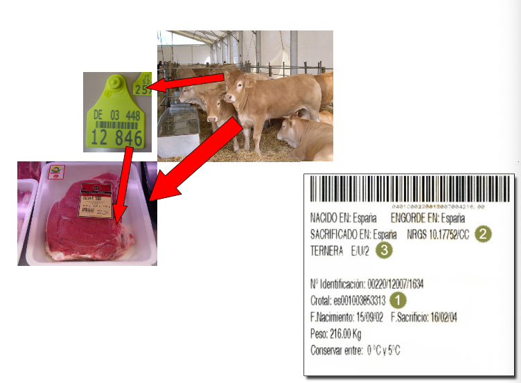 – identidad de cada pieza en la carnicería (o de los productos elaborados: leche, embutidos, quesos, etc.).