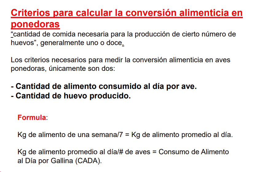 conversión alimenticia en aves de postura.