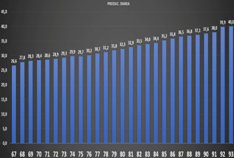 una producción diaria de huevos de 0.8, se dividirá la