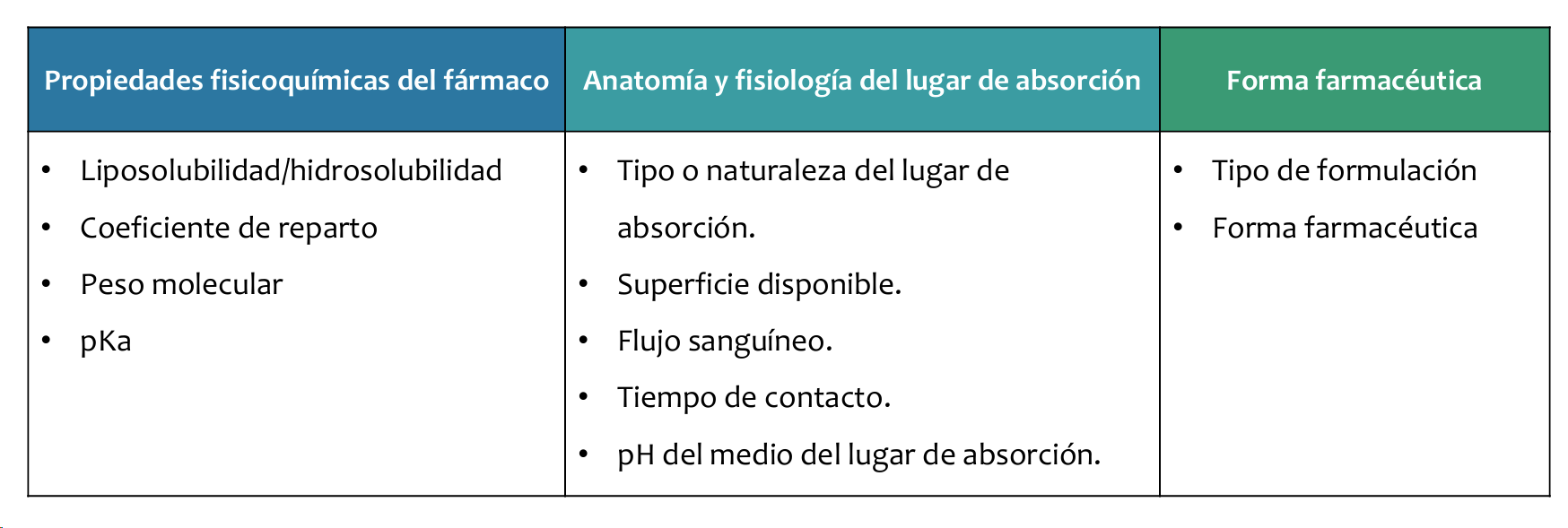 | Velocidad de absorción del fármaco | Absorción | Indica qué tan rápido pasa el fármaco desde el sitio de administración a la sangre. |