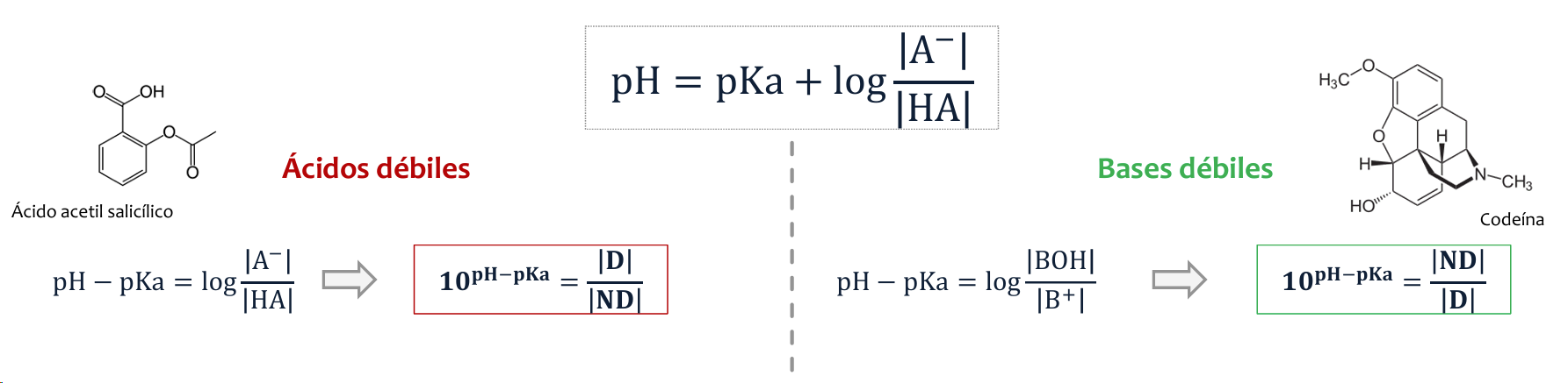 - Se puede calcular si conocemos si es un acido o base, el pKa del farmaco (Valor del pH en el cual un farmaco presenta un 50% de sus moleculas ionizadas y el otro no, si es un acido el numero estará por debajo de 7, si es una base estaraá por encima)