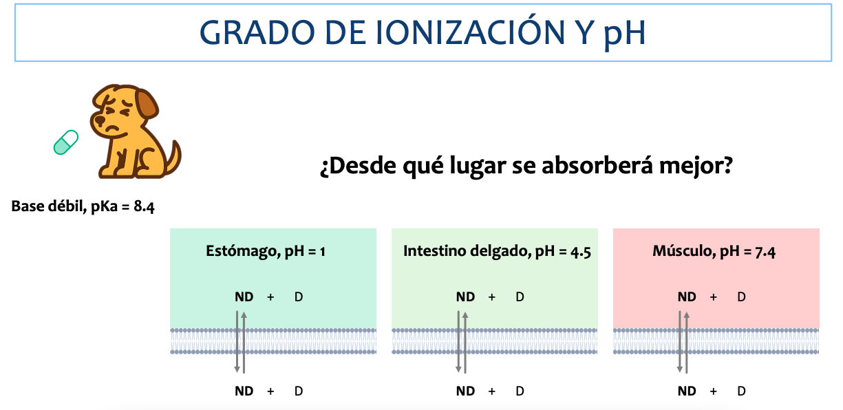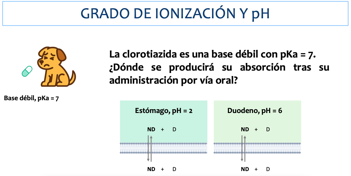 Saber como afecta el PH y grado de disociacion a la absorción de un medicamento Formula de Henderson-Hasselback y problemas con la misma (tema 4)