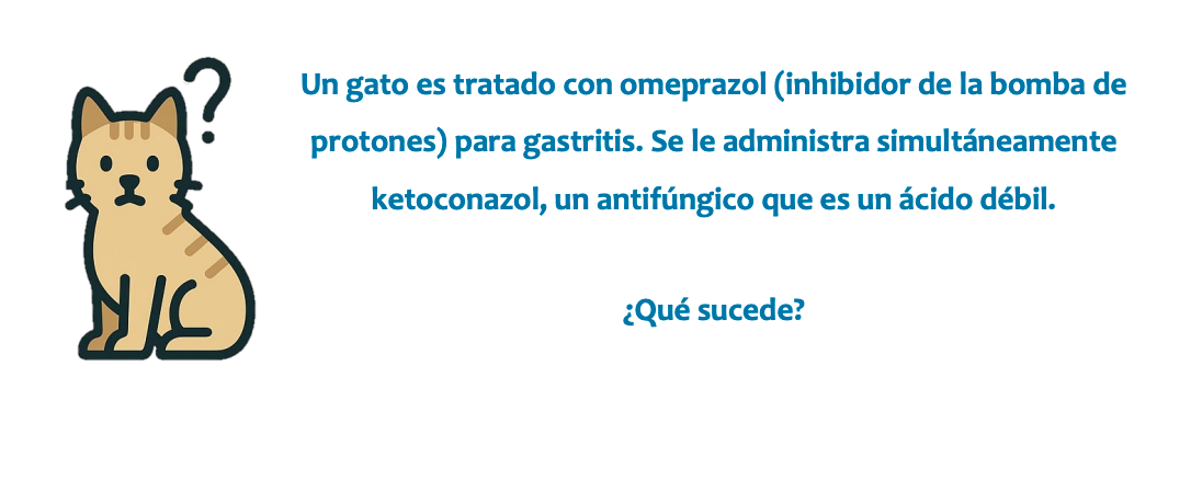 Un gato es tratado con omeprazol (inhibidor de la bomba de protones) para gastritis. Se le administra simultáneamente ketoconazol, un antifúngico que es un ácido débil. ¿Qué sucede?