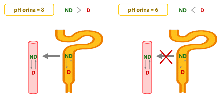 Un perro recibe un antiinflamatorio ácido débil. Si su orina se vuelve más ácida de lo normal, ¿qué efecto tendrá sobre la reabsorción renal de este fármaco y por qué? La duración del efecto del farmaco, se habra eliminado mas rapidamente.