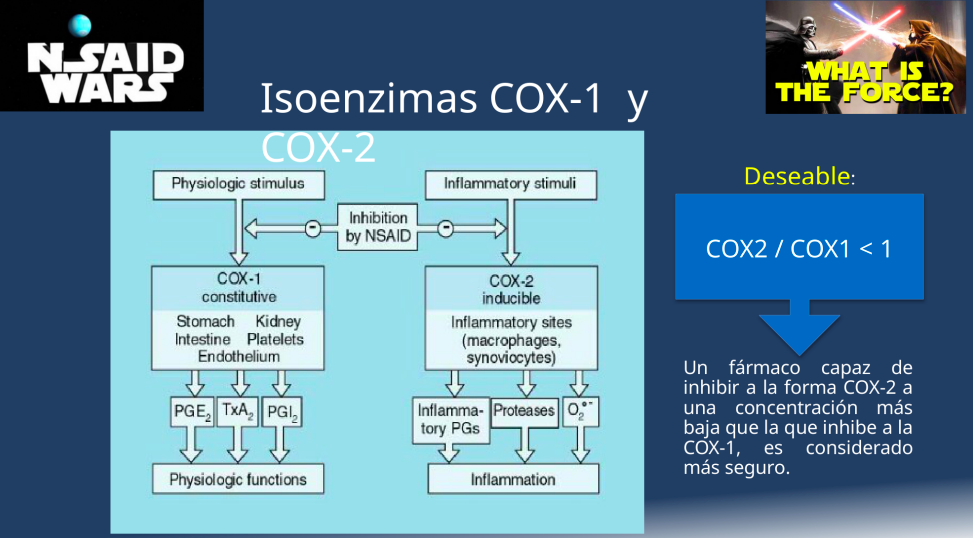 Un fármaco capaz de inhibir la COX-2 a una concentración más baja que la necesaria para inhibir COX-1 se considera más seguro.