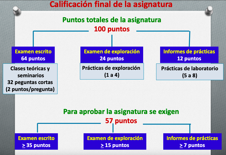 - Examen práctico sobre el animal al final de las prácticas 1, 2, 3, 4 y 9. Hay que sacar un 6 o volverlo a hacer.
