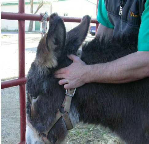 - Debajo de la oreja.