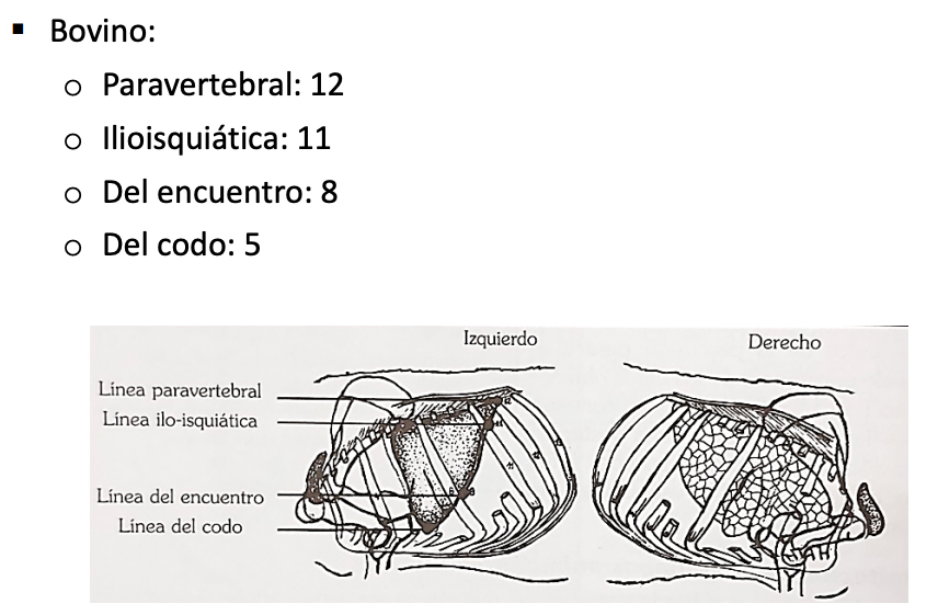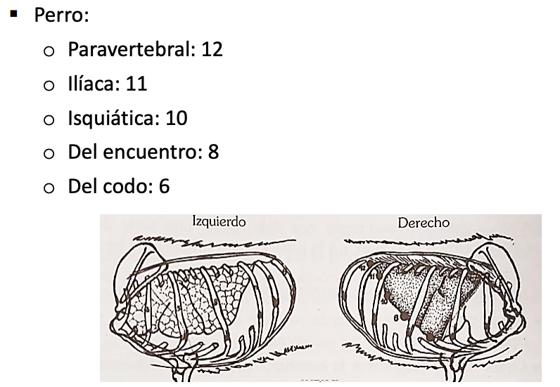 | Especie | Paravertebral | Ilíaca / Ilioisquiática | Encuentro | Codo |