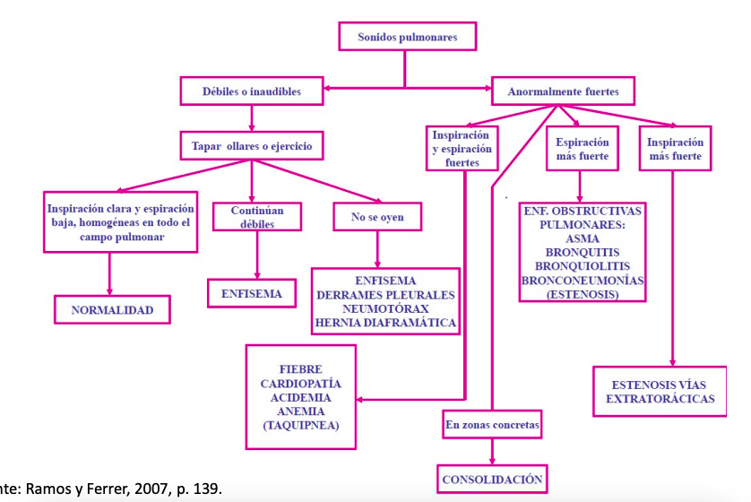 | Anormalmente fuertes | Enfermedades obstructivas (asma, bronquitis, bronquiolitis, bronconeumonía). |