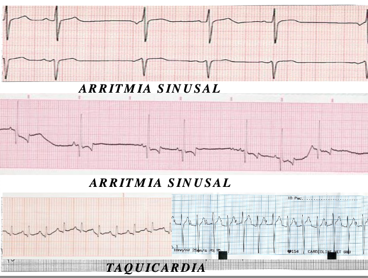 Arritmia sinusal arrítmica se relaciona condificultades en el riego coronario, aunque en Veterinaria tiene poco significado si no va acompañada de otras anomalías en el ECG.