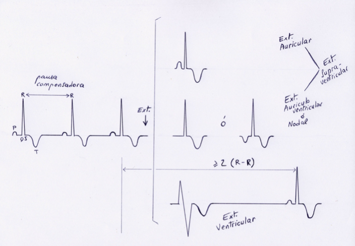 Un concepto que debes tener claro, es el de la ''pausa compensadora completa''. Consiste en el intervalo de tiempo que existe entre ondas R de dos latidos normales los cuales tienen una extrasistole en medio