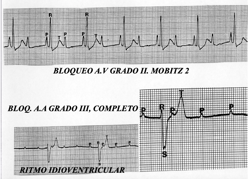 - Grado2: Aparecen algunas ondas p sin complejos QRS asociados, pues por el bloqueo, el impulso a veces no puede bajar a los ventrículos