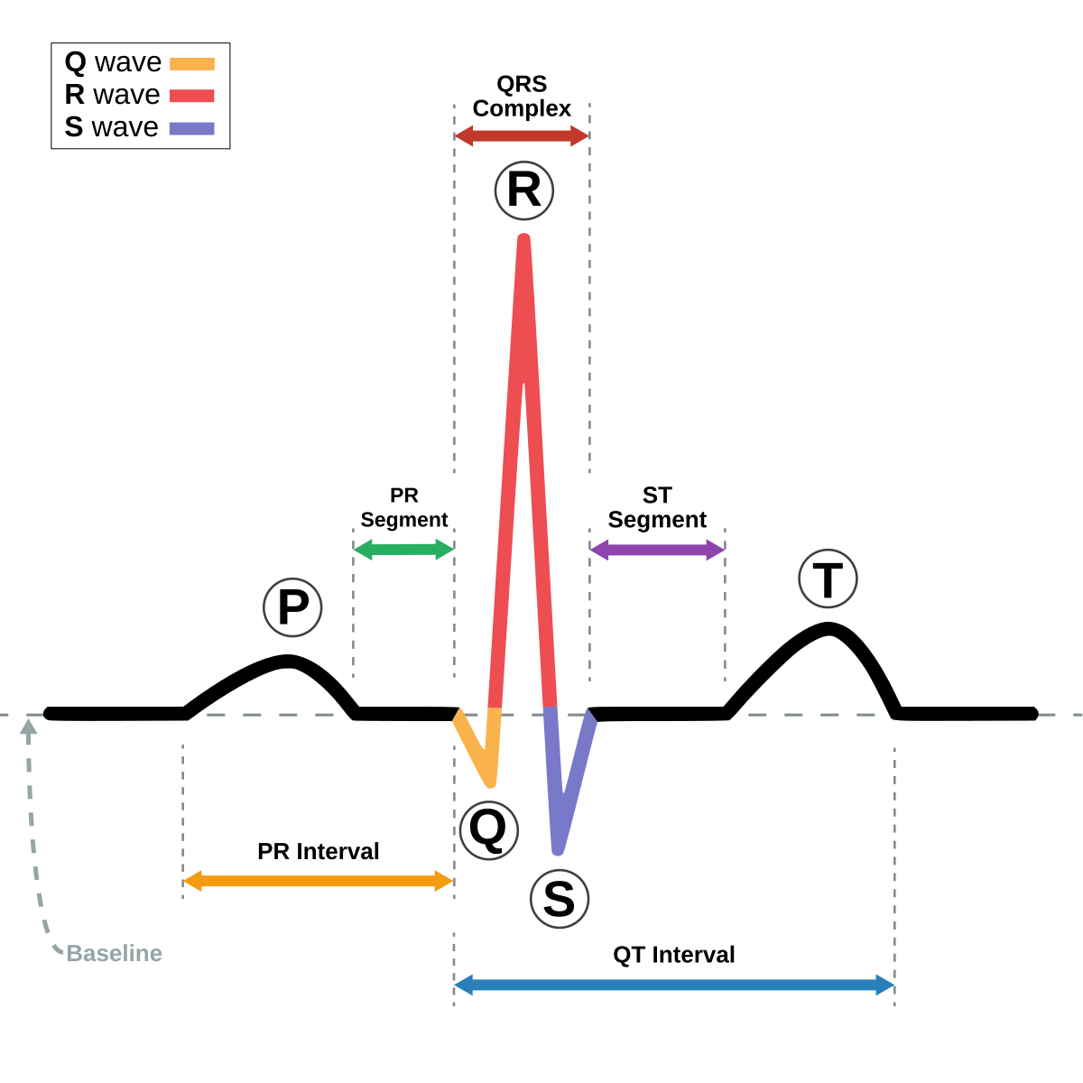 *Existe una onda que marca la repolarización auricular, sin embargo, esta resulta invisible en el electro por culpa del complejo QRS, ya que ambos fenómenos se producen a la vez, y como que el complejo la invisibiliza
