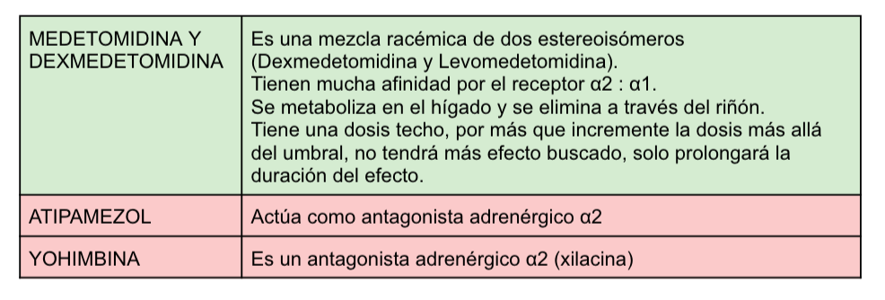 🔵 α2 Agonistas (Medetomidina, Dexmedetomidina, xilacina, romifidina, detomidina)