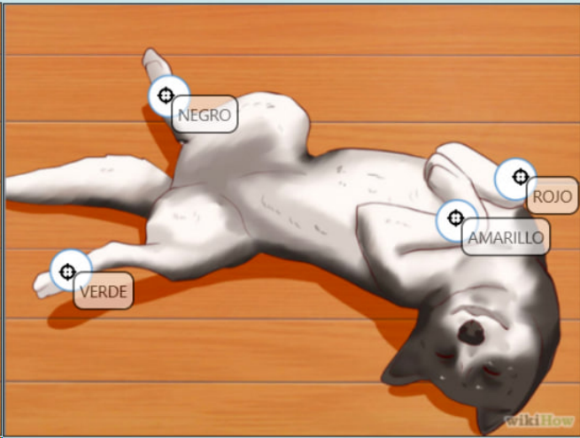(5) ¿Dónde van colocados los parches o pinzas de electro en este perro?