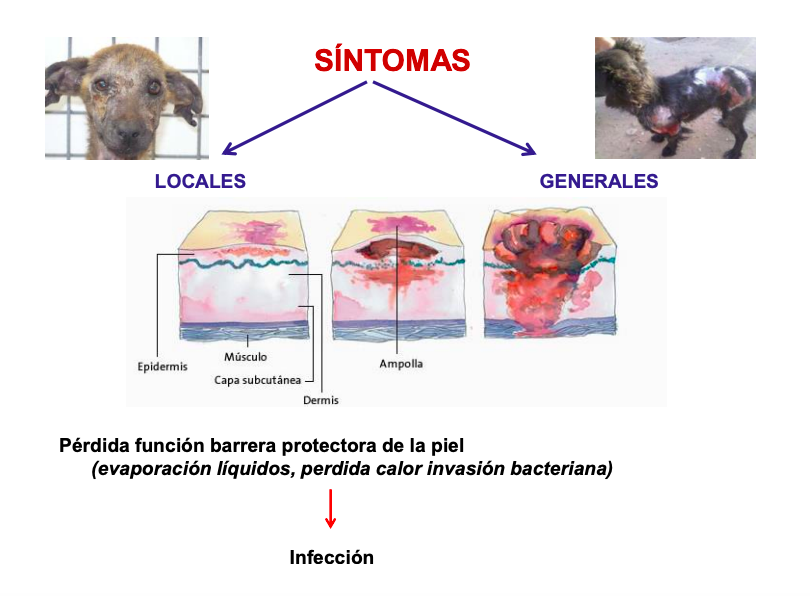| 1° | Epidermis afectada | Eritema, dolor leve, escozor |