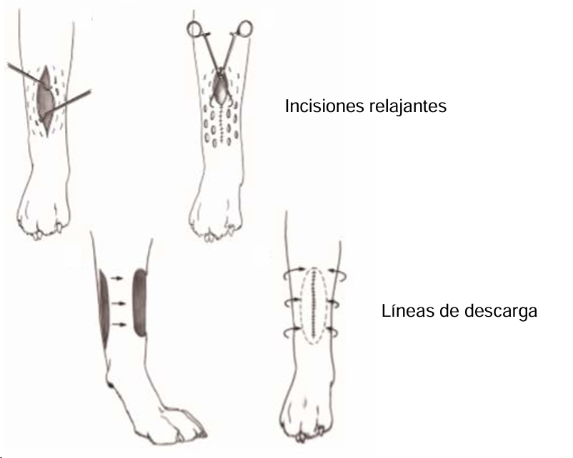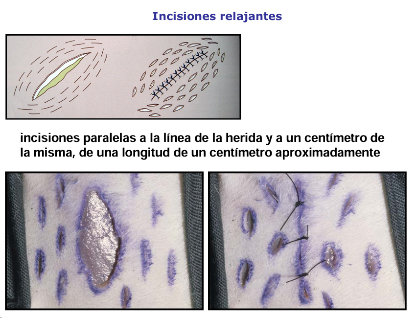 Incisiones paralelas a la línea de la herida y a un centímetro de la misma, de una longitud de un centímetro aproximadamente.