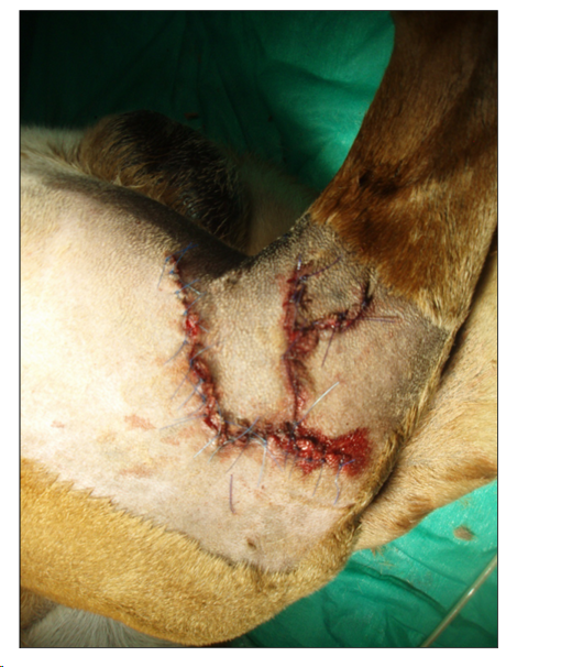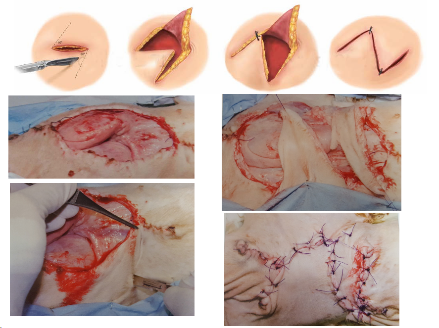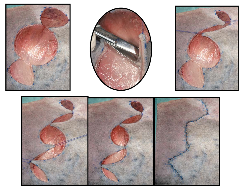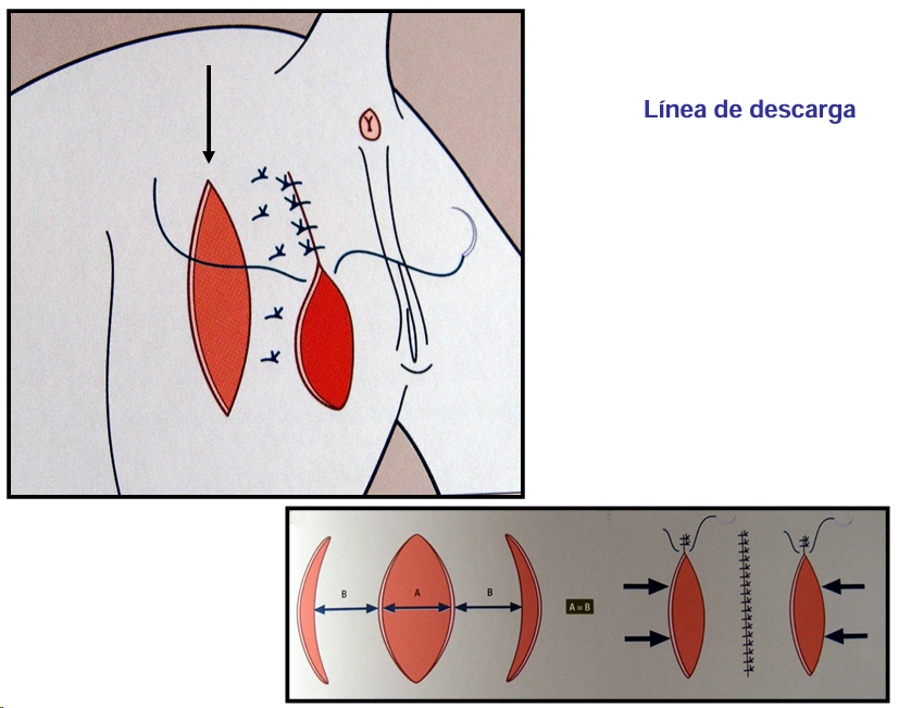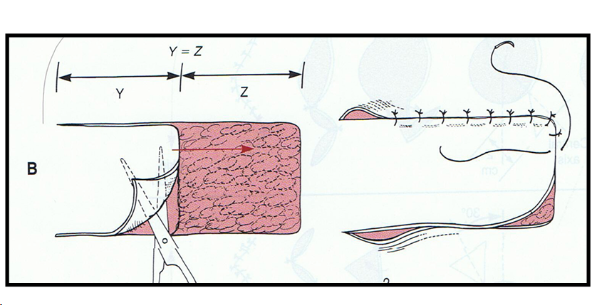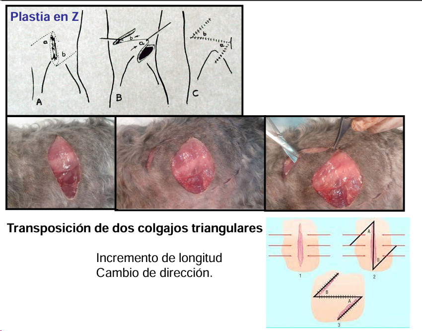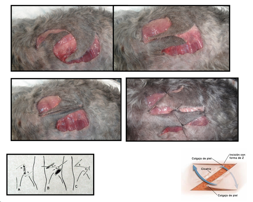 “Colgajo de piel — incisión con forma de Z — cicatriz SS — colgajo de piel.”
