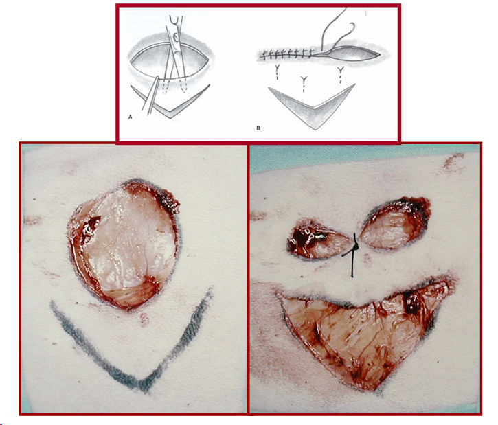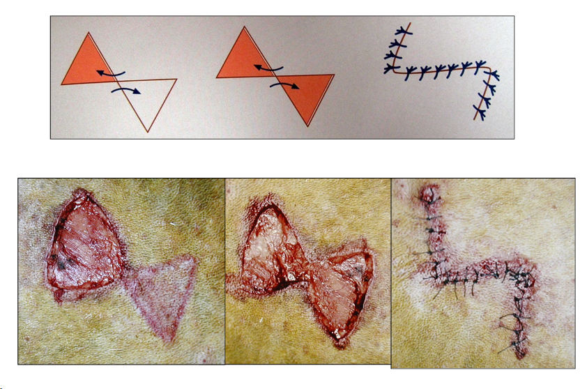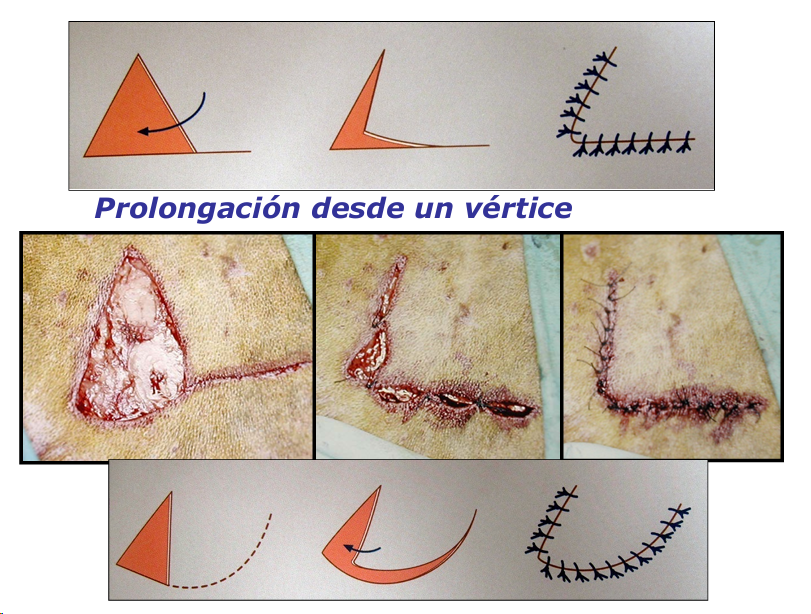 Toda herida se puede convertir en una forma geométrica y aprovechar la elasticidad de la piel de las regiones adyacentes.