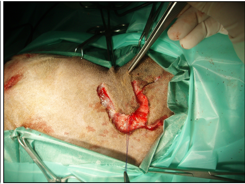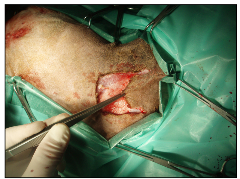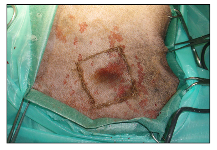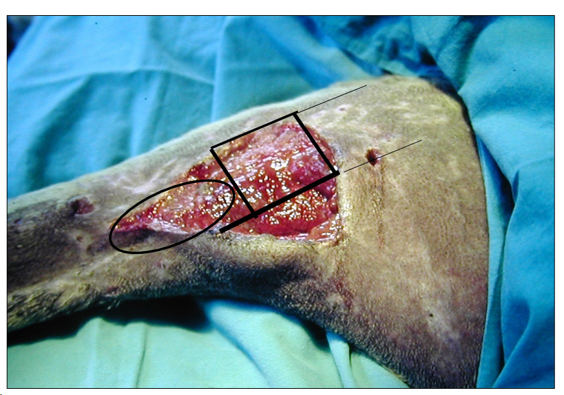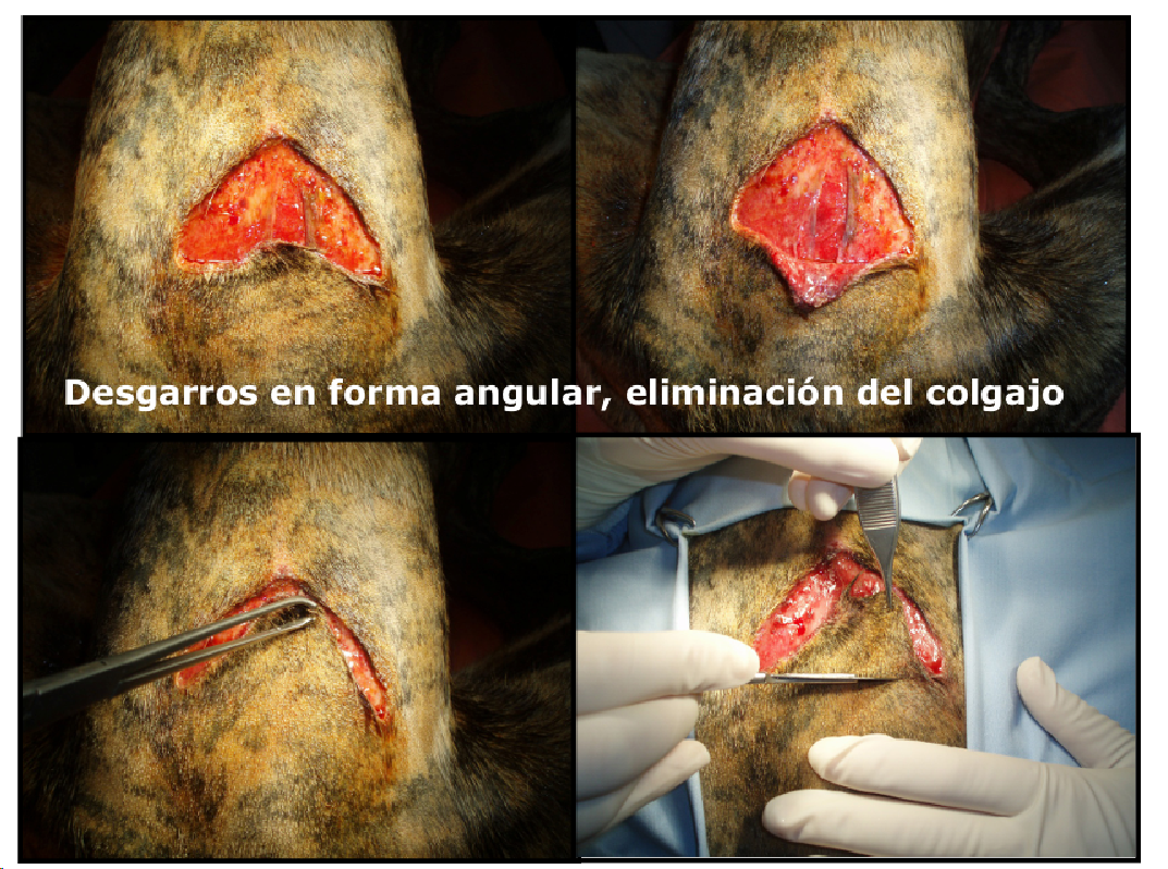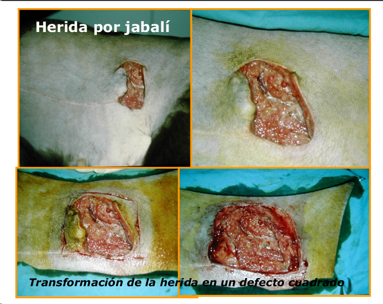 “Herida por jabalí — transformación de la herida en un defecto cuadrado.”