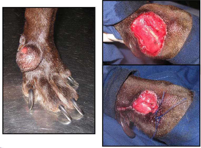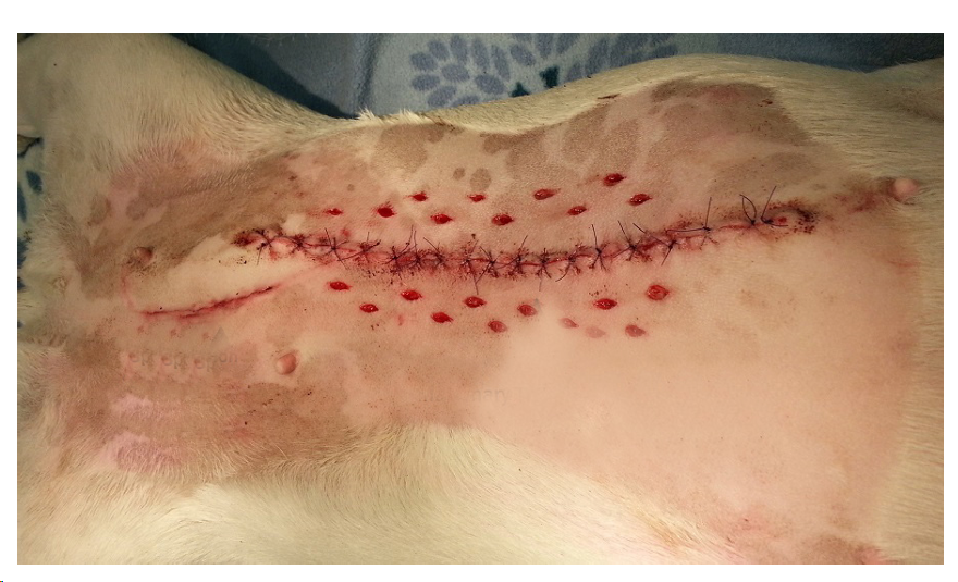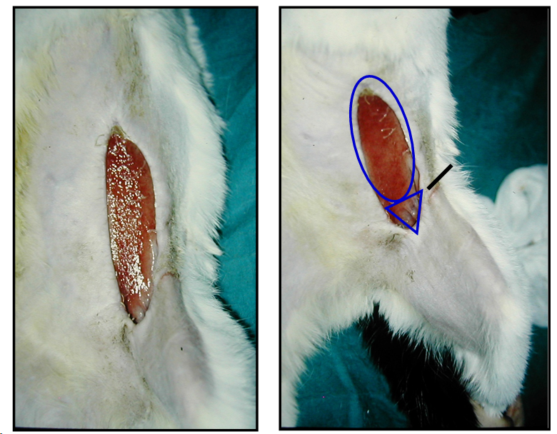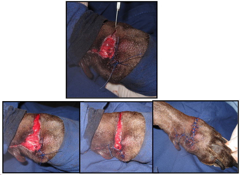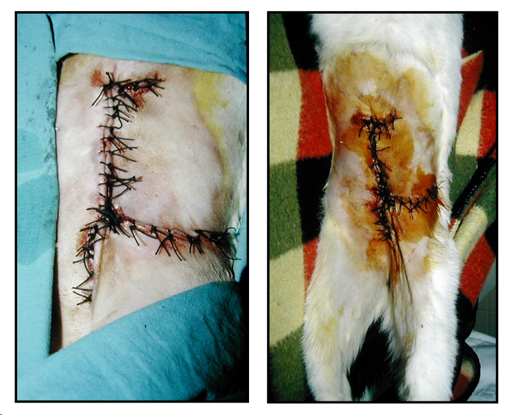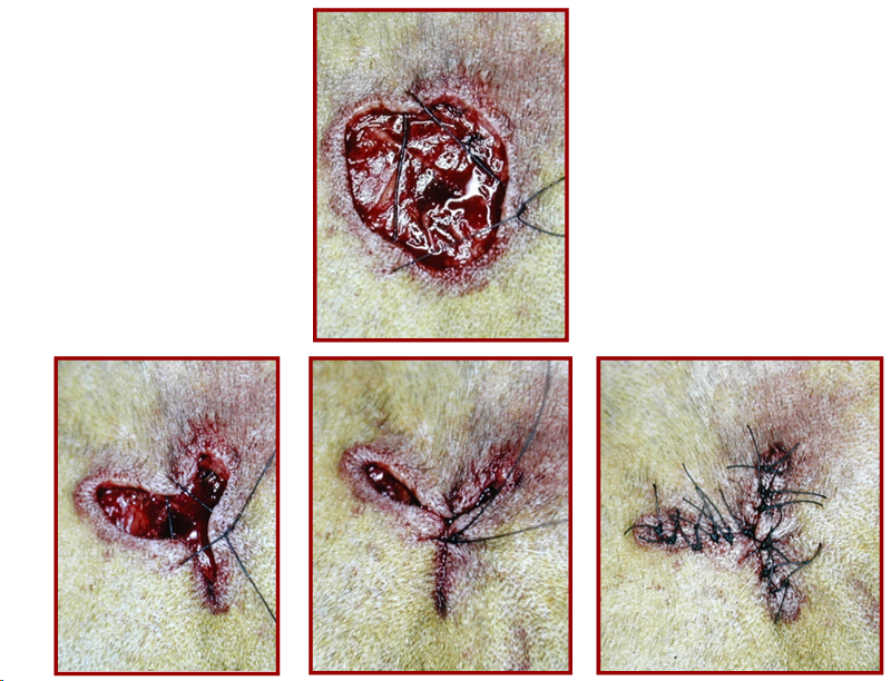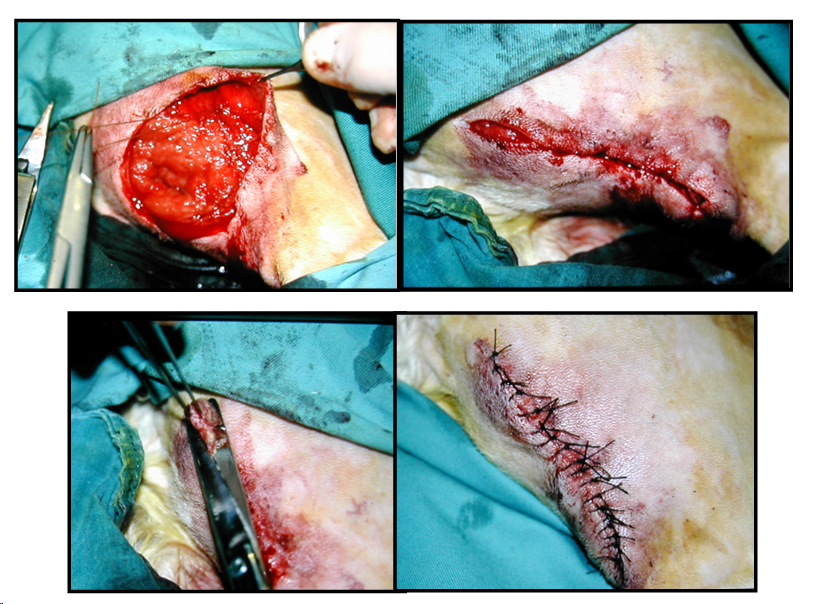 “Herida por jabalí — transformación de la herida en un defecto cuadrado.”