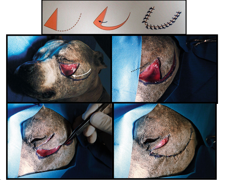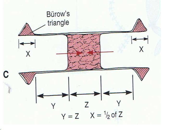 - Uso de colgajos opuestos para cubrir defectos alargados.