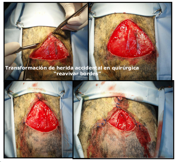 “Transformación de herida accidental en quirúrgica — reavivar bordes.”