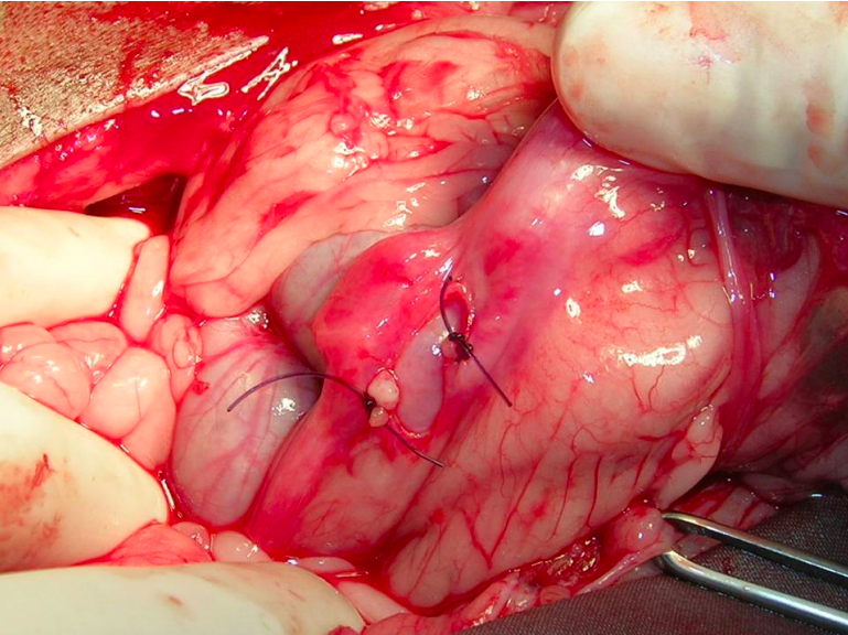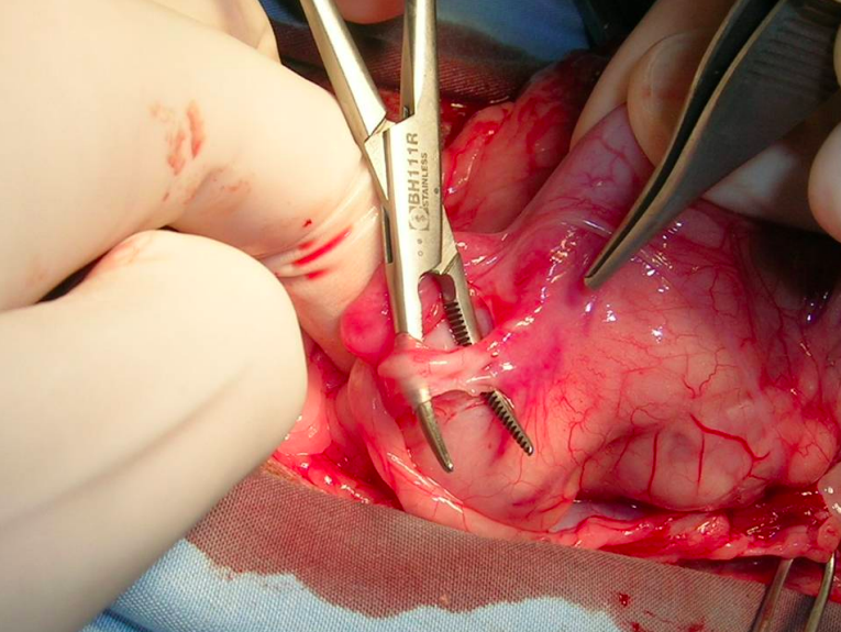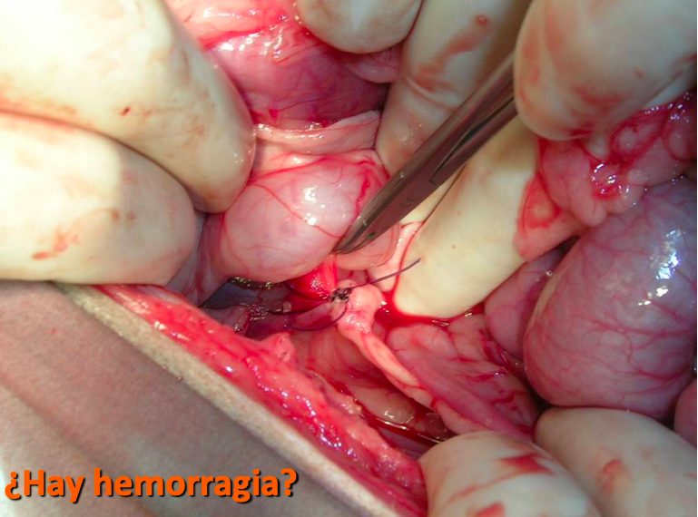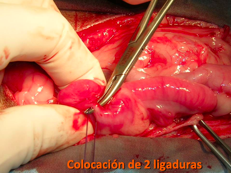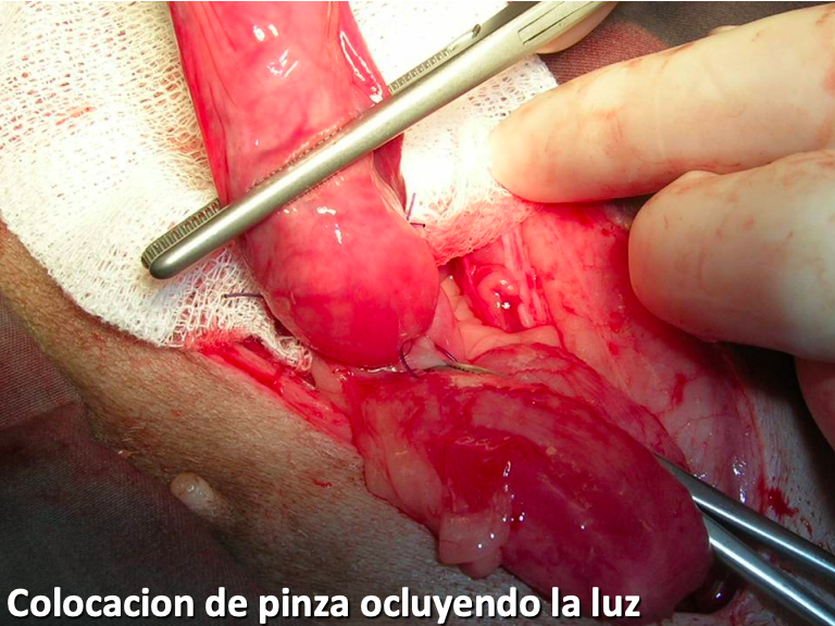 Colocación de pinza ocluyendo la luz