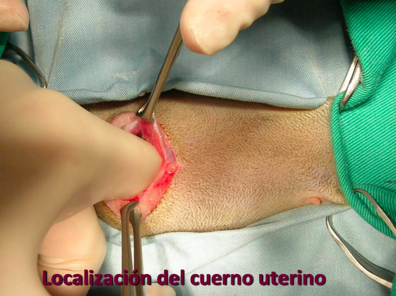 Localización del cuerno uterino