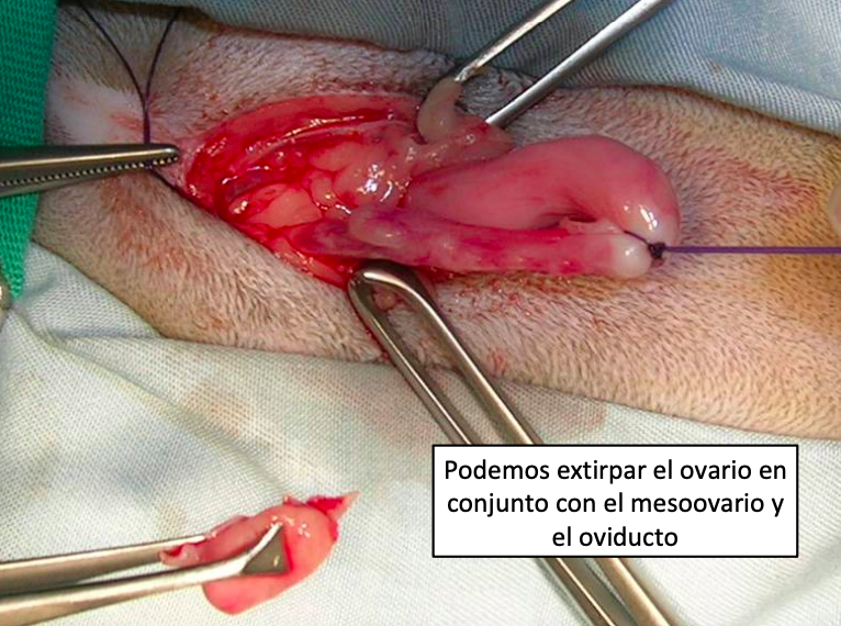 OVARIECTOMÍA: se extirpan los ovarios completos (y normalmente parte de oviducto)