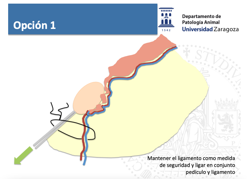 Mantener el ligamento como medida de seguridad y ligar en conjunto pedículo y ligamento