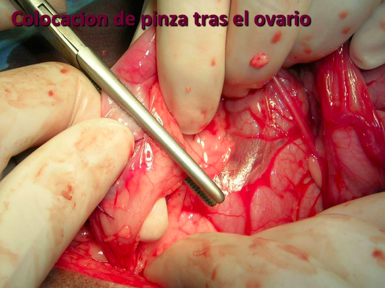Colocación de pinza tras el ovario