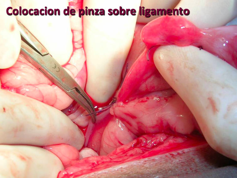Colocación de pinza sobre ligamento