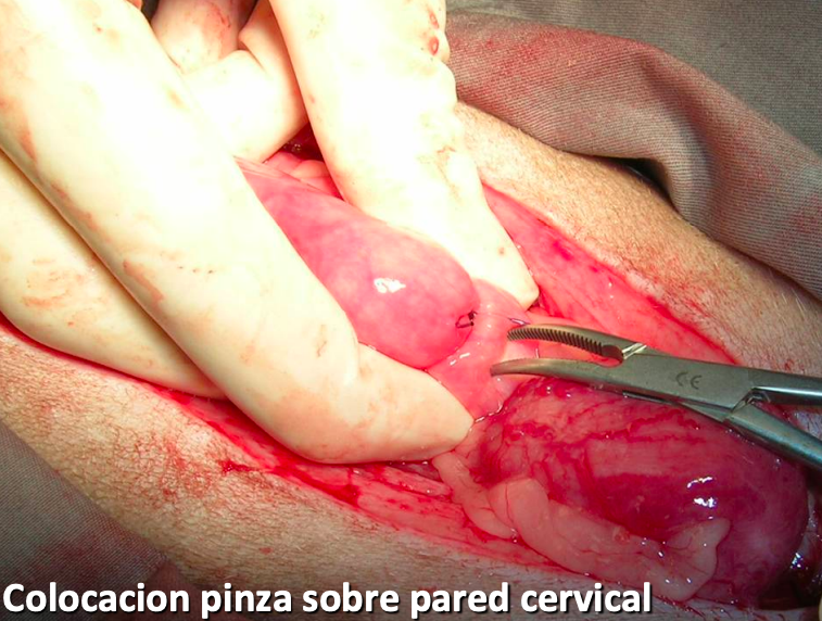 Colocación pinza sobre pared cervical