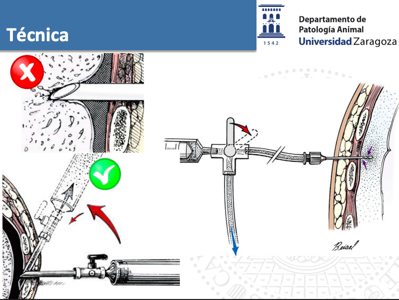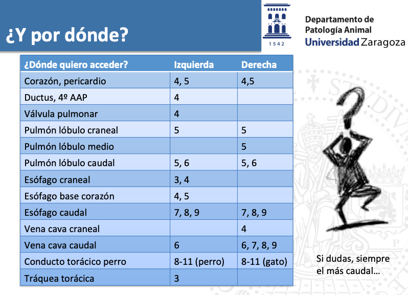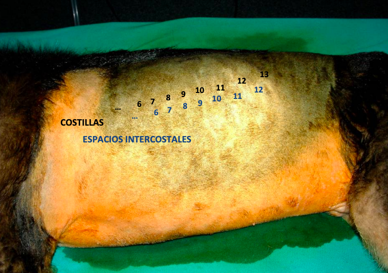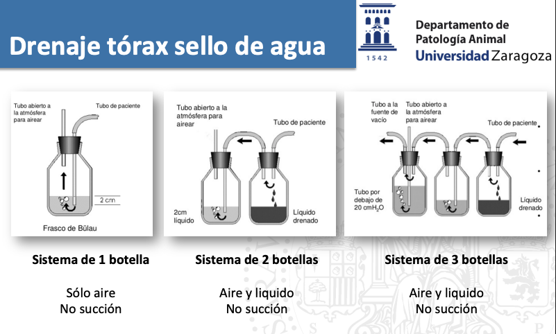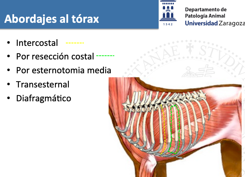 • Entrada al tórax: usar mosquito craneal a la costilla cuando el animal inspira