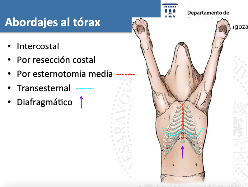 • El tubo NO debe colocarse entre esternebras, sino entre costillas