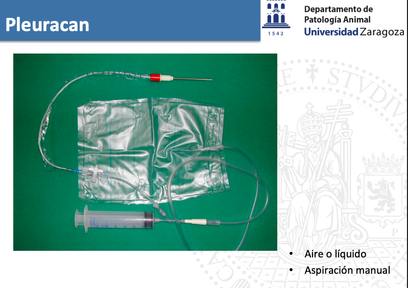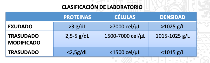 • 2–3 ml de fluido pleural, bajo contenido en células (<500/μL) y proteínas (<1,5 g/dL)