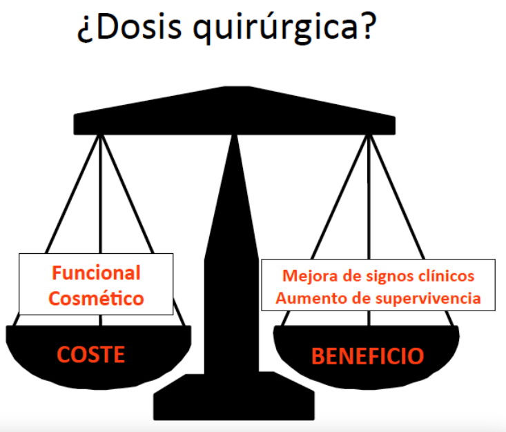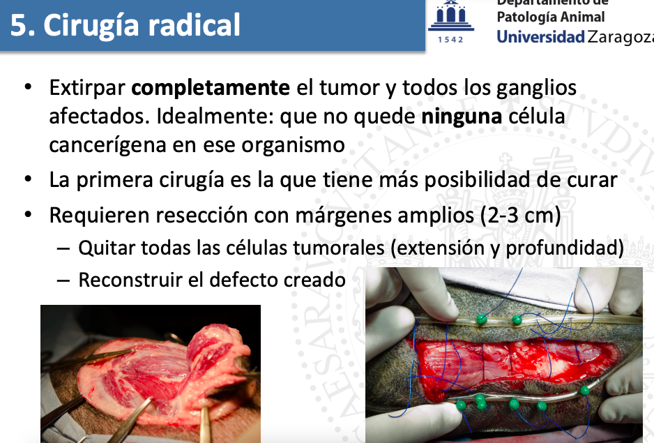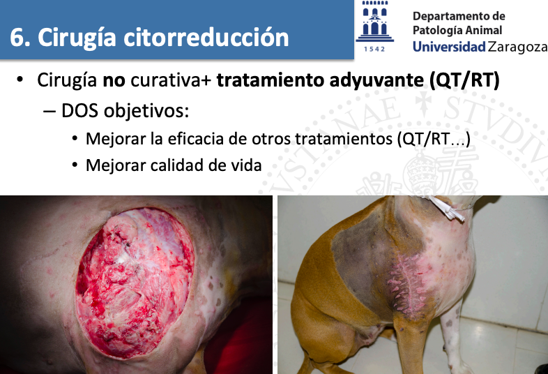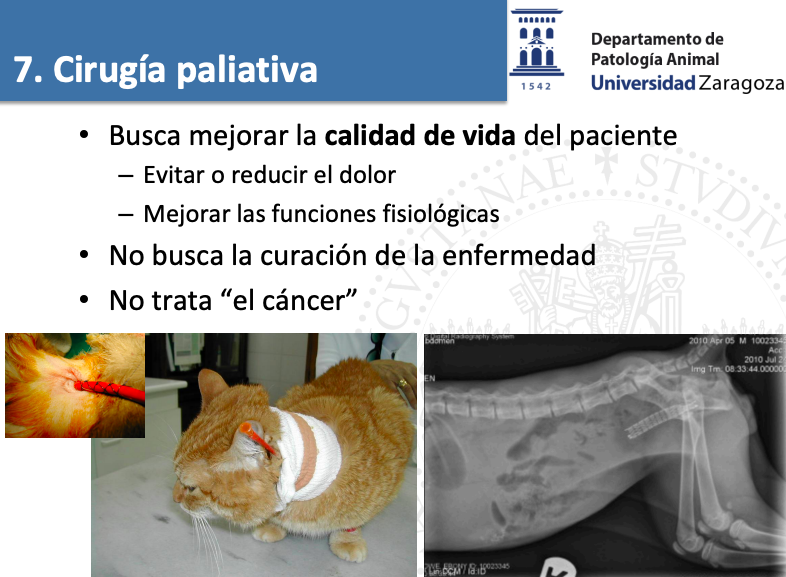 Por ejemplo, cancer de mama con metastasis, quitamos solo la parte que está ulcerada e infectada para evitar mas dolor. Pero no extirparemos todas las mamas