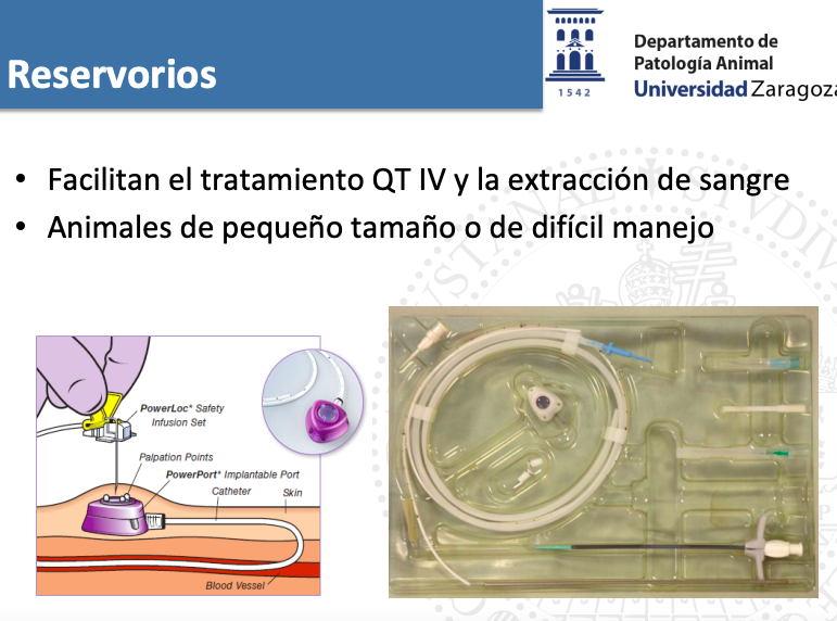 - Ejemplo: reservorios para QT intravenosa o extracción de sangre en animales pequeños