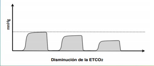 - Capnografia por debajo del limite de CO2 - Hipoventilación, menor gasto cardiaco, embolia pulmonar