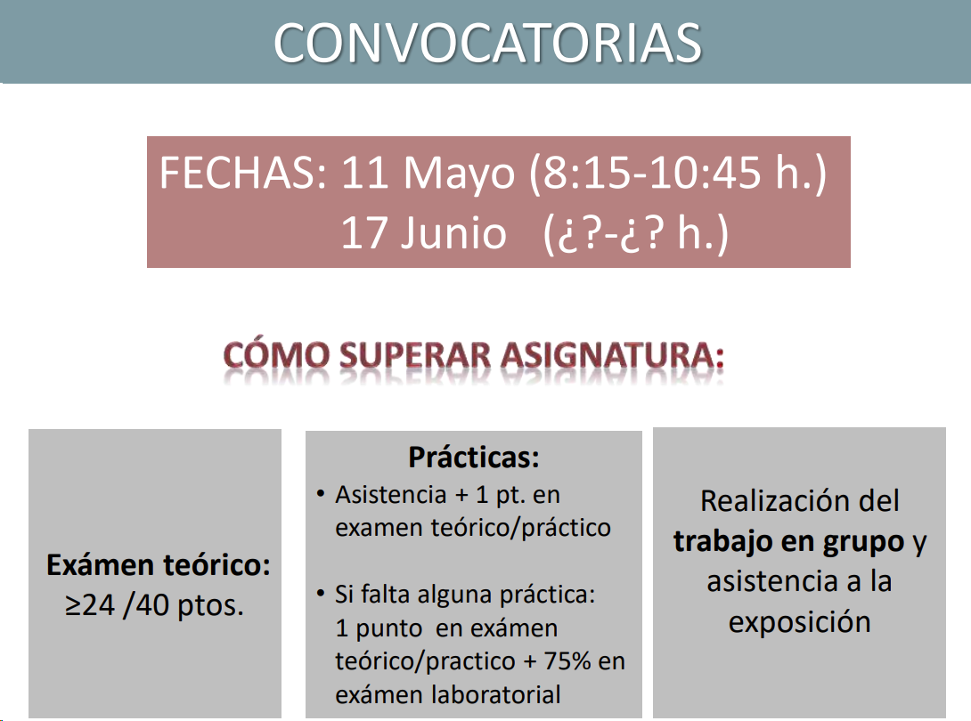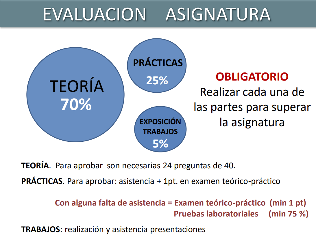 Si no se hacen las practicas hay examen practico y una prueba laboratorial aleatoria de las 7 posibles.