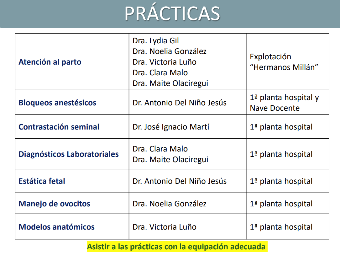 - 7 practicas (2 pregunta en el teorico) - semen, inseminacion, reproducción asistida, estatica, bloqueos, diagnostico y atencion al parto