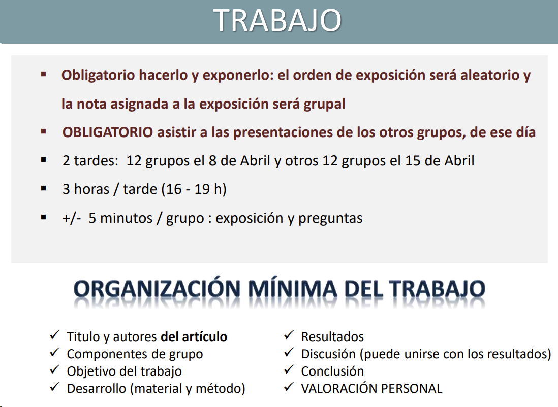 Trabajo en grupo: 1 articulo por grupo, un alumno al sorteo, NO TODOS
