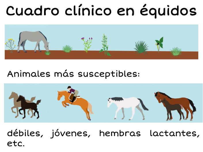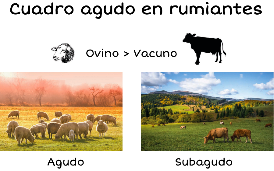 - En caprino, cuadros agudos y en equidos cuadro cronico, generalmente