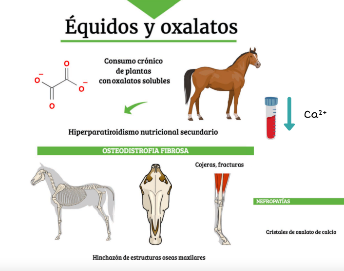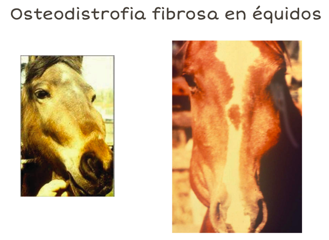 - Équidos: Osteodistrofia fibrosa y nefropatías.