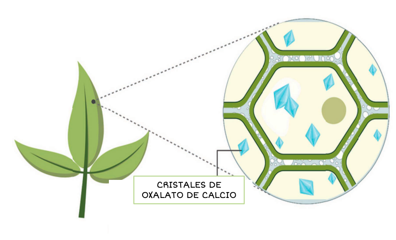 - Estructuras cristalinas denominadas rafidios (agujas de oxalato de calcio, de micras a milímetros).