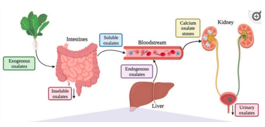 - Absorción del ácido oxálico en estómago (pH ácido).