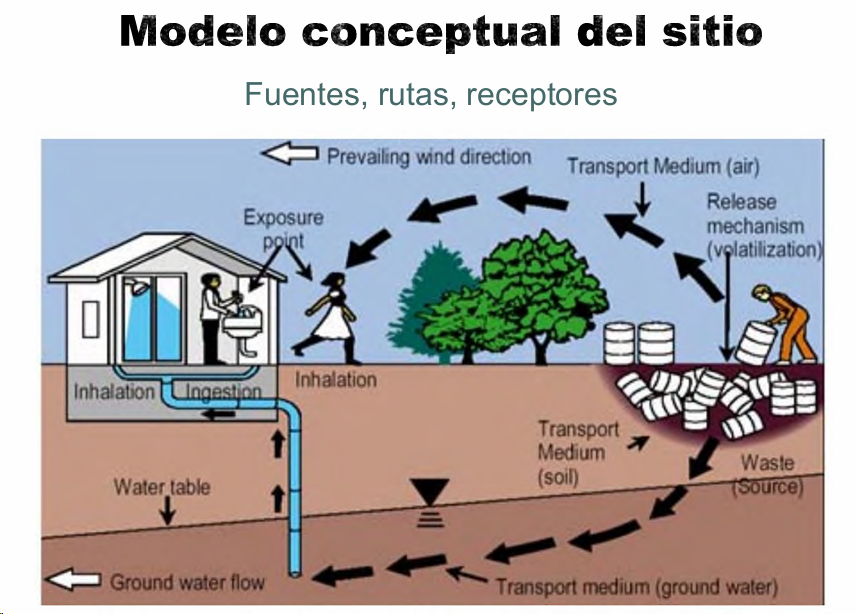 - Se estudia su desplazamiento en el M.A., desde su emisión hasta el lugar de contacto (ruta de exposición)