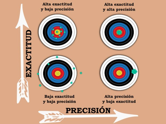 - Precisión: todas las muestras dan el mismo valor. (Este cerca del valor exacto o no)