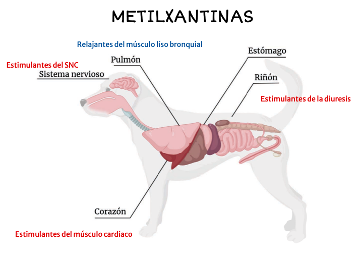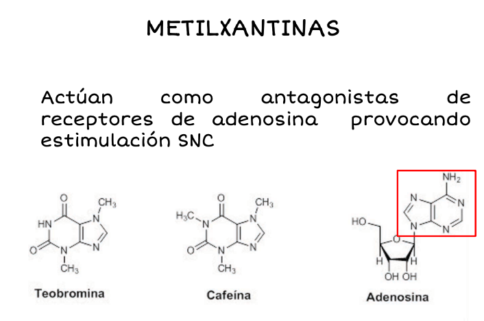 Actuan como antagonistas de receptores de adenosina provocando estimulación de SNC